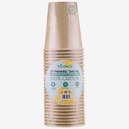 Чаши картон нулева пластмаса крафт 240 ml 25 бр