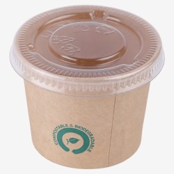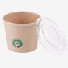 Паници изработени от картон крафт, те са устойчиви при транспортиране и поддържат добре температурата на вашата храна. Те са подходящи за горещи или студени ястия, те се затварят плътно с помощта на съвместими PET или RPET капаци. Не съдържат пластмаса, те са ламинирани с биофилм PLA и са сертифицирани съгласно директивата EN13432 като биоразградими и компостируеми.