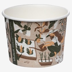 Bowls made from kraft cardboard, resistant during the transport process, and maintain your food's temperature. Suitable for warm, hot and cold foods, they can be hermetically closed using the compatible CPLA or cardboard lids. They do not contain plastic, as they are laminated using PLA bio-film, and are EN13432 certified as biodegradable and compostable.