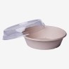 The transparent version of cardboard or CPLA lids, these lids are suitable for cold foods (up to 40° C), requiring visibility. Without including new plastic in the manufacturing process, recycled plastic (rPET) is an economic solution, with a low impact on the environment. Compatible with small 60 ml bowls, as well as 710 ml (Ø 210), 900 ml (Ø 195), and 940 ml (Ø 210) ones. Once used, they can be collected alongside plastic waste, in order to be recycled.