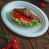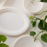 Oval plates made from sugarcane fiber, resistant under extreme temperatures, suitable for the refrigerator or microwave oven. Resistant to temperatures up to 120°C for oil-based products and up to 95°C for water-based products. They are rapidly biodegradable and compostable, according to the EN13432 European standard, even at your own home.