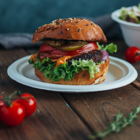 Round plates made from sugarcane fiber, resistant under extreme temperatures, suitable for the refrigerator or microwave oven. Resistant to temperatures up to 120°C for oil-based products and up to 95°C for water-based products. They are rapidly biodegradable and compostable, according to the EN13432 European standard, even at your own home.