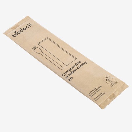 Fából készült evőeszköz, amelynek alapanyaga gondosan kezelt és megújuló forrásokból származik (FSC-tanúsítvány), 100%-ban természetes és biológiai úton lebomló, és alkalmas a forró és a hideg ételekhez is. A csomag tartalmaz egy 16 cm-es kanalat és egy kraft színű szalvétát. A külső csomagolás kraft papírból készül, és megtalálhatók rajta a termék tanúsítványai és előnyei. A csomag 250 készletet tartalmaz.